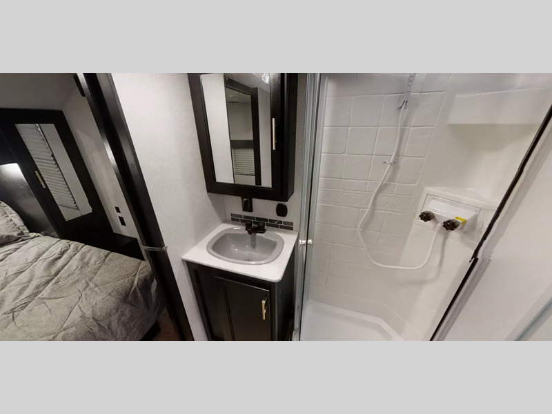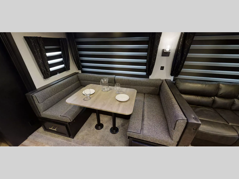 Each model comes with features to make your experience even more enjoyable. The Campfire package includes two 40" dinette drawers (on models with slides), an on-demand tankless water heater, and an air fryer. The Base Camp package includes an armored underbelly tank enclosure which protects your unit from road debris, and exterior amenities like a hot/cold shower and a TV bracket with hook ups.