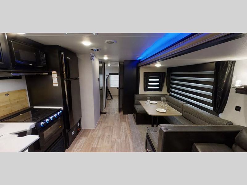 Enjoy your trips to the fullest with a Forest River Cherokee travel trailer! Their luxurious interiors featuring a Chef Select black stainless steel kitchen suite package, USB charging stations, and a beautiful entertainment center will have you feeling right at home.