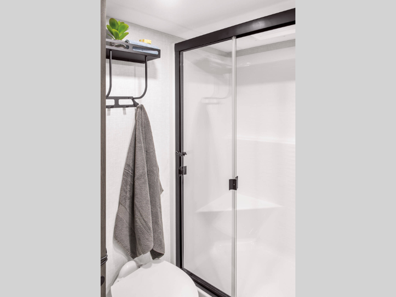 A PVC roof membrane covers protects the top of these units and a heated and enclosed underbelly protects the bottom. The RV airflow A/C system increases the 15,000 BTU air flow by an average of 40% for an improved performance, faster cooling time, and reduction of noise. You will also appreciate the 200W solar panel for off-grid capabilities, and the leveling system will have you set up at camp in no-time!